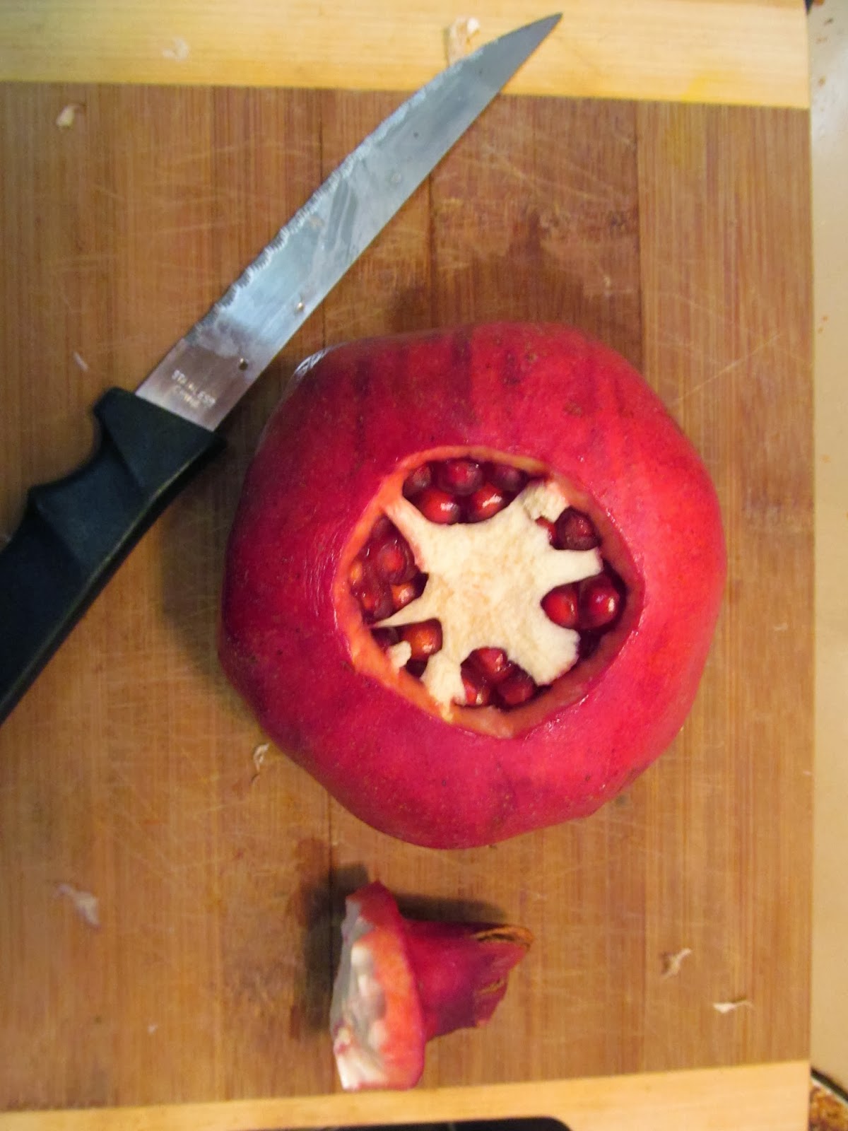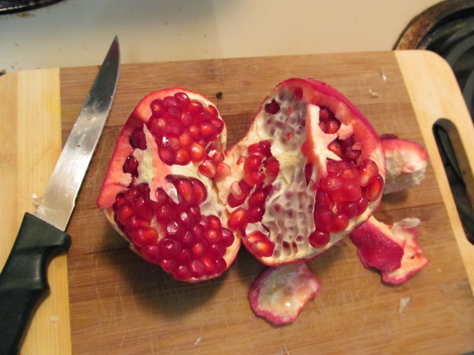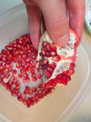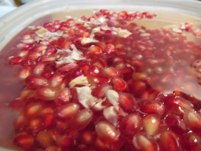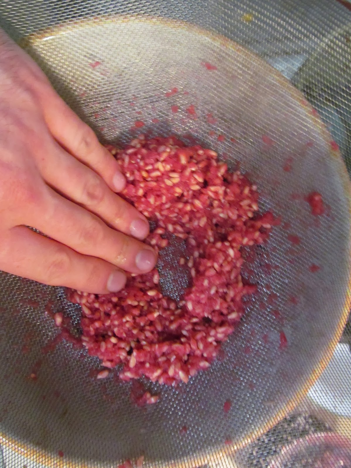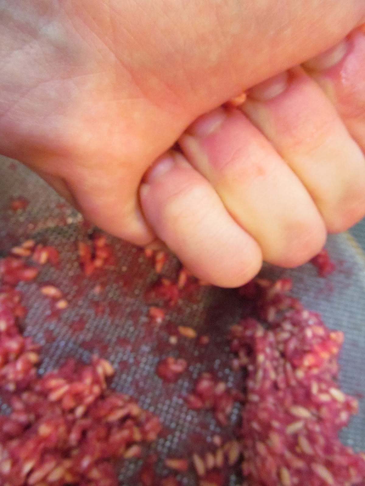 • Separate the stringy innards from the squash seeds and rinse thoroughly