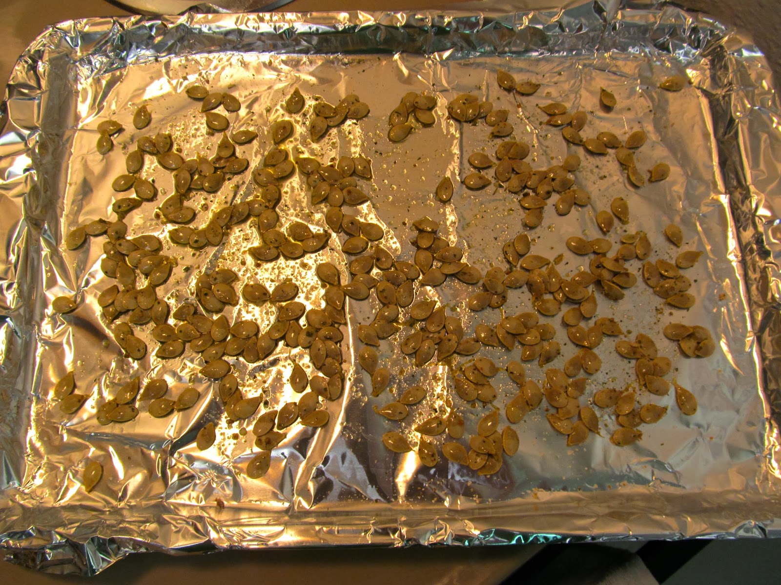 • Spread the seeds evenly on a baking sheet with aluminum foil over it