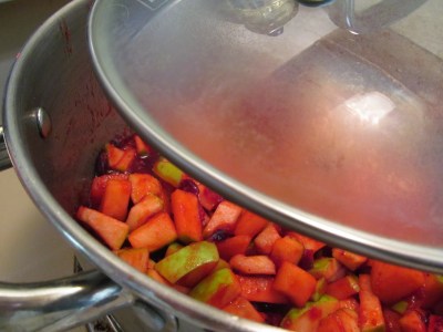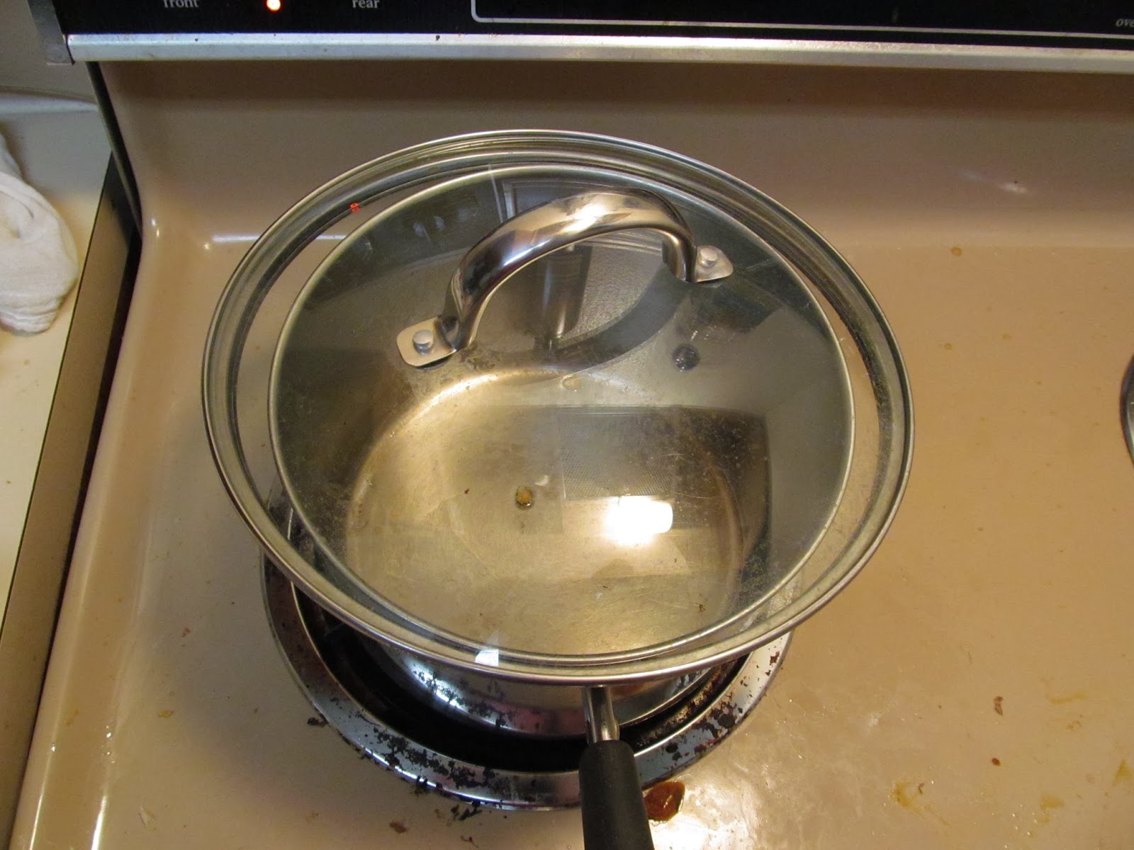 Heat the pasta sauce. (Yes, I used the microwave out of convenience, but I would normally place it on medium-low in a small saucepan for 5 minutes.)
